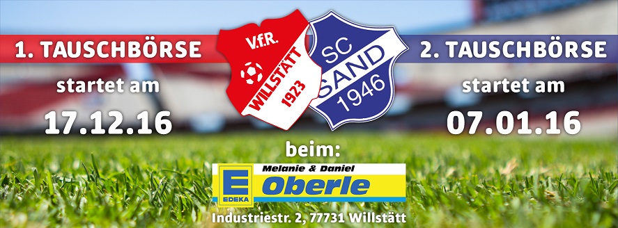 Viele Sammler haben bereits doppelte Sticker, um diese mit anderen Sammlern tauschen zu können, veranstalten beide Vereine jeweils eine Tauschbörse. Am Samstag den 17. Dezember von 10 bis 16 Uhr findet die erste Tauschbörse statt. Auf dem Außengelände des Edeka Markt Oberle in Willstätt wird ein Zelt mit Heizlüftern und Bierzeltgarnituren aufgestellt. Damit die kleinen und großen Sammler in Ruhe ihre Zeit vertreiben können, wird auch entsprechend bewirtet. Für den Hunger gibt es warme Würste vom Grill und für den Durst gibt es für die Kleinen alkoholfreie Getränke und zum erwärmen Kinderpunsch. Für die Erwachsenen wird zudem Glühwein und Bier angeboten. Die Bewirtung am 17. Dezember übernimmt die Jugendabteilung des VfR Willstätt, die Einnahmen kommen entsprechend der Jugendkasse des VfR zu Gute. Am Samstag den 07. Januar von 10 bis 16 Uhr findet in ähnlichem Umfang die zweite Tauschbörse statt, an diesem Termin wirtet die Jugendabteilung des SC Sand.
